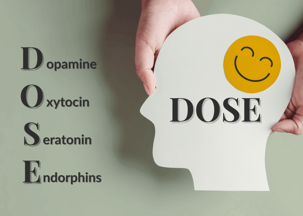 Taking your daily “DOSE” could be offering sincere compliment or encouragement to a colleague, sending a thoughtful text you keep meaning to send, leaving a generous tip, or letting someone merge in traffic with a real smile.